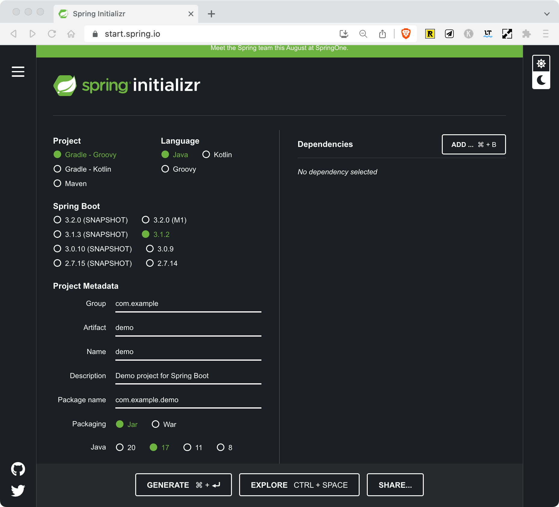 To follow this tutorial, you have to go on spring initializr and generate a basic spring boot app for this demo.