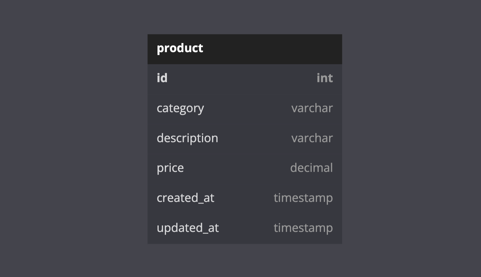 We will take a pretty simple example for this tutorial. We want to build a backend application for Product management. So, a simple database schema will look like this.